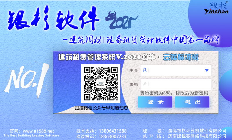 銀杉租賃軟件最新2021版分單機標準、單機旗艦、云端標準網(wǎng)絡(luò)、云端盤扣網(wǎng)絡(luò)、手機平板版等,超三萬家租賃公司客戶邀請您同行!